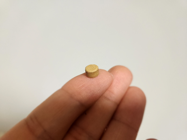 알약의 크기를 손바닥, 아니 손가락 위에 올려놓고 보아도 매우 작게 느껴집니다. 180mg에 달하는 정말 작은 정제이고요. 이렇게 작다보니 잠결에 화장실 가기를 꺼려하여 자기 전 수분 섭취를 최소화 하는 저같은 사람에게는 쉽고 편하게 섭취가 가능한 상황을 만들어 주었습니다.